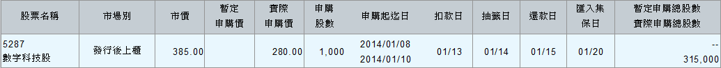 抽抽抽, 非工資之被動收入 : 股票抽籤 ~ 5287 數字科技